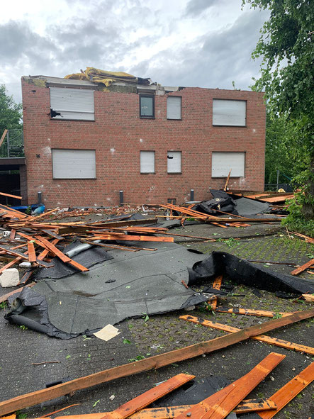 Der Tornado hat unsere Einrichtung mit voller Wucht getroffen. Das gesamte Dach und das Außengelände…